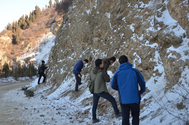 驪山梁上積雪未消,隊員們冒著零下3℃的低溫認真的測量地質(zhì)剖面。他們分工明確,有人拉皮尺,有人定巖性,有人管記錄。寒風吹過參賽隊員的臉頰,他們毫無知覺,一心一意專注于比賽之中。擂臺之上比速度,實戰(zhàn)之中看技能,這樣的比賽場面,也展示著地質(zhì)隊員精益求精的工作態(tài)度。