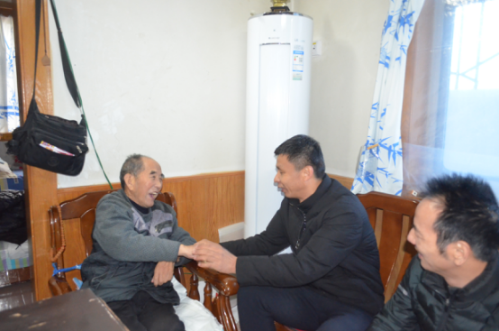 圖為公司黨委副書記、總經(jīng)理王和平慰問困難黨員朱啟厚