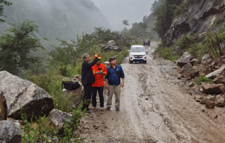 領導對崩塌現場險情查看指導